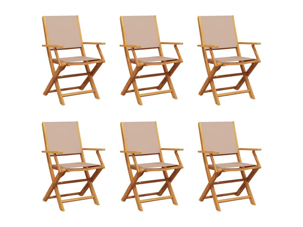 vidaXL Skladacie záhr. stoličky 6 ks sivohnedé látka a masívne drevo