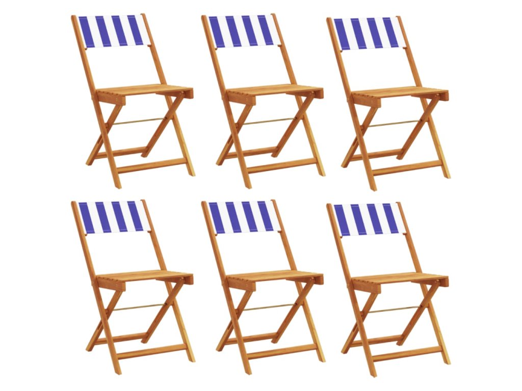 vidaXL Skladacie záhr. stoličky 6ks modrá a biela látka+masívne drevo
