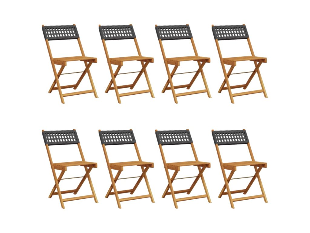 vidaXL Skladacie záhr. stoličky 8 ks čierne polyratan a masívne drevo