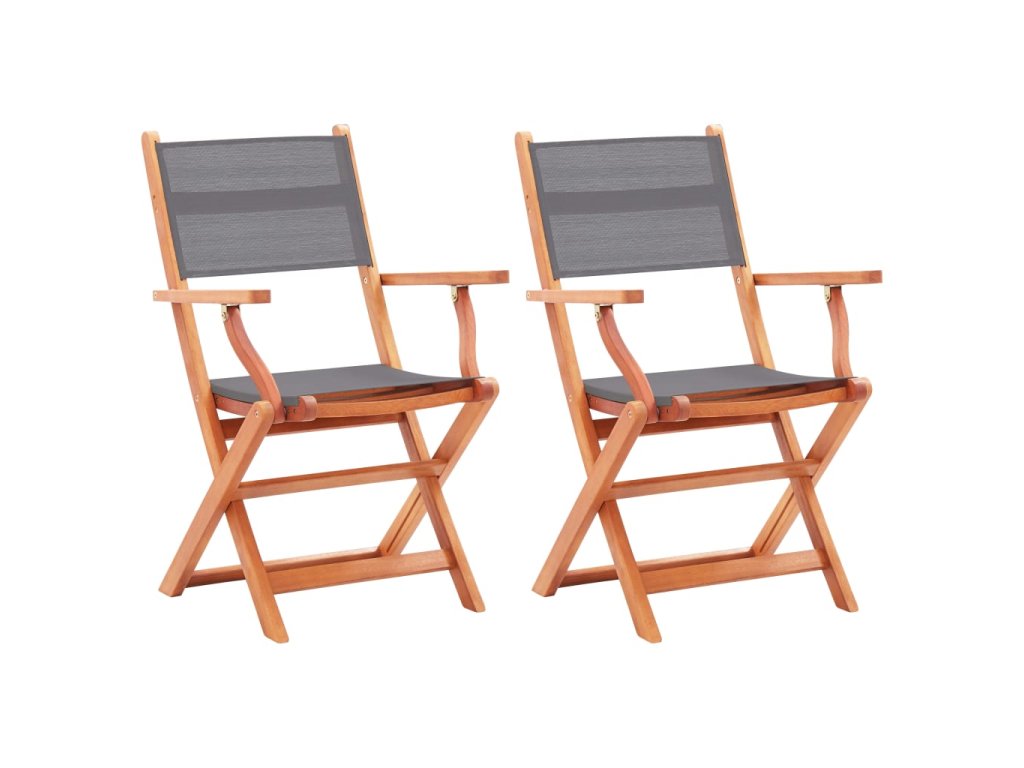 vidaXL Skladacie záhradné stoličky 2 ks, sivé, eukalyptus a textilén