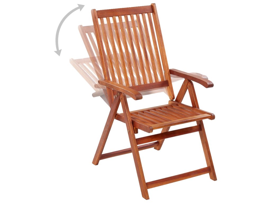 Skladacia stolička je vyrobená z masívneho akáciového dreva, tropického tvrdého dreva, vďaka čomu je stabilná a odolná. Olejom upravený povrch sa ľahko čistí vlhkou handričkou. Jedálenskú stoličku je možné nastaviť do 5 polôh, čo vám poskytne optimálne pohodlie počas sedenia. Môže sa tiež sklopiť, aby sa ušetrilo miesto, keď sa nepoužíva.