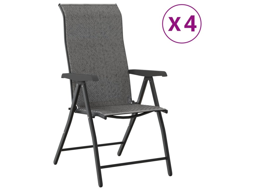 vidaXL Skladacie záhradné stoličky 4 ks, sivé, polyratan