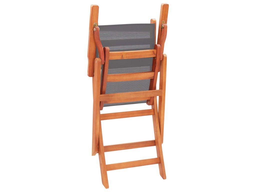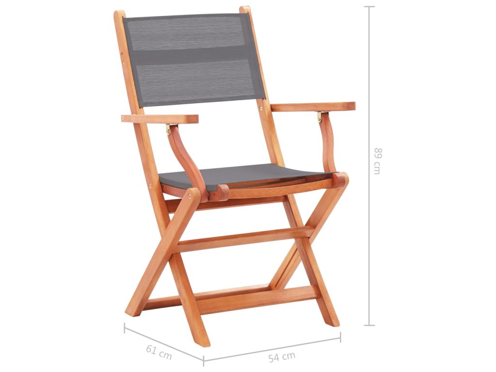 Tieto stoličky sú vyrobené z masívneho eukalyptového dreva, čo zvyšuje ich trvácnosť a stabilitu, vďaka čomu sú stoličky vhodné pre vonkajšie použitie. Majú tiež povrchovú úpravu s prírodným olejom, vďaka čomu majú jemný vzhľad, sú odolné voči poveternostným vplyvom a ľahko sa udržiavajú. Sedadlo a operadlo je vyrobené z priedušného textilénu, ktorý je mäkký na dotyk a poskytuje dokonalé pohodlie počas oddychu. Lakťové opierky ponúkajú dodatočnú podporu pre vaše ruky. Stoličky sú skladacie, takže keď sa nepoužívajú, ušetria priestor.