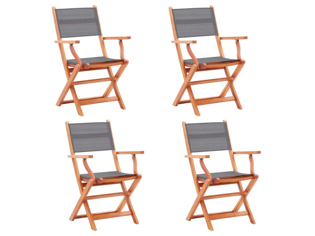 vidaXL Skladacie záhradné stoličky 4 ks sivé eukalyptový masív a textilén