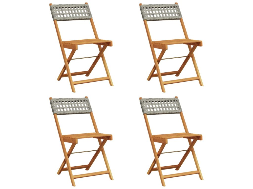 vidaXL Skladacie záhradné stoličky 4 ks sivé polyratan a masívne drevo