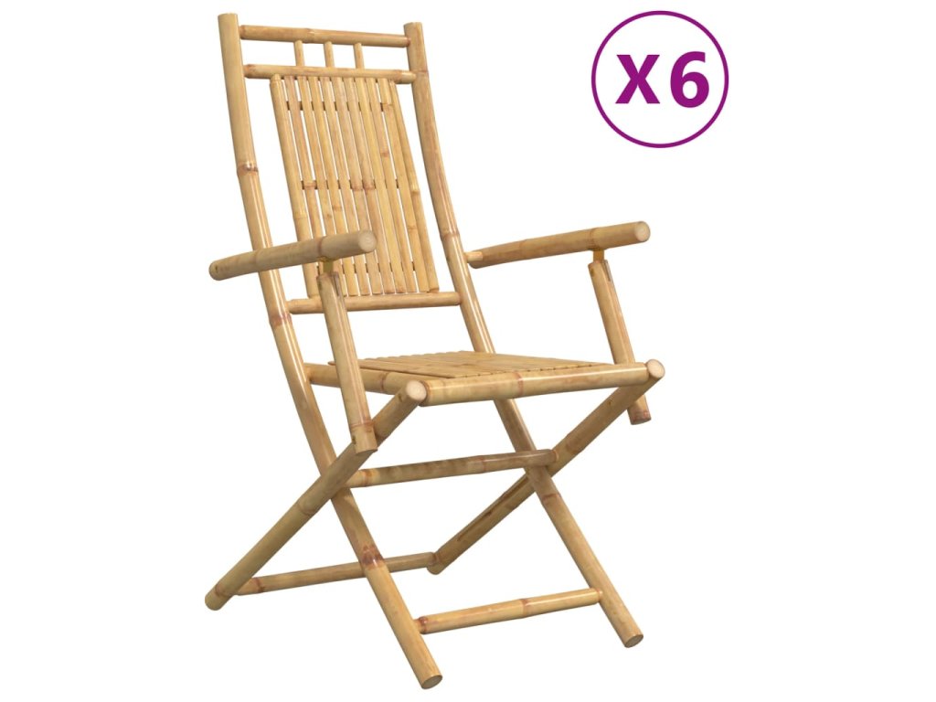 vidaXL Skladacie záhradné stoličky 6 ks 53x66x99 cm bambus