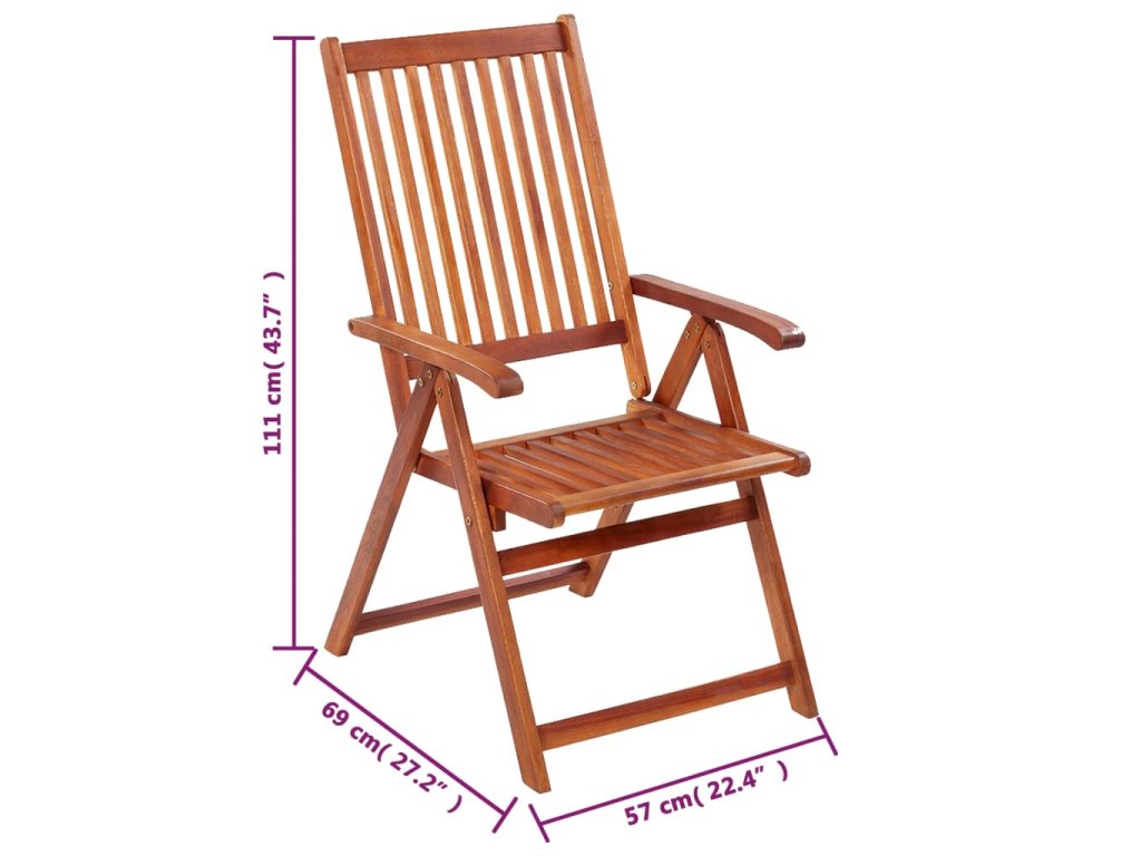 Skladacia stolička je vyrobená z masívneho akáciového dreva, tropického tvrdého dreva, vďaka čomu je stabilná a odolná. Olejom upravený povrch sa ľahko čistí vlhkou handričkou. Jedálenskú stoličku je možné nastaviť do 5 polôh, čo vám poskytne optimálne pohodlie počas sedenia. Môže sa tiež sklopiť, aby sa ušetrilo miesto, keď sa nepoužíva.