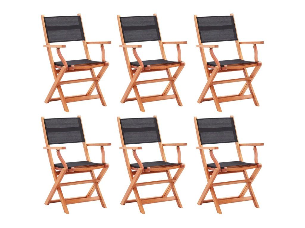 vidaXL Skladacie záhradné stoličky 6 ks čierne eukalyptus a textilén