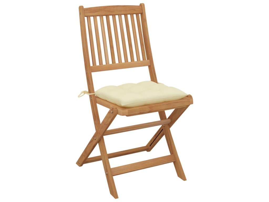 Tieto skladacie stoličky z masívneho akáciového dreva s podložkami poskytujú ideálne miesto na odpočinok a užívanie si slnečných lúčov na záhrade alebo terase.