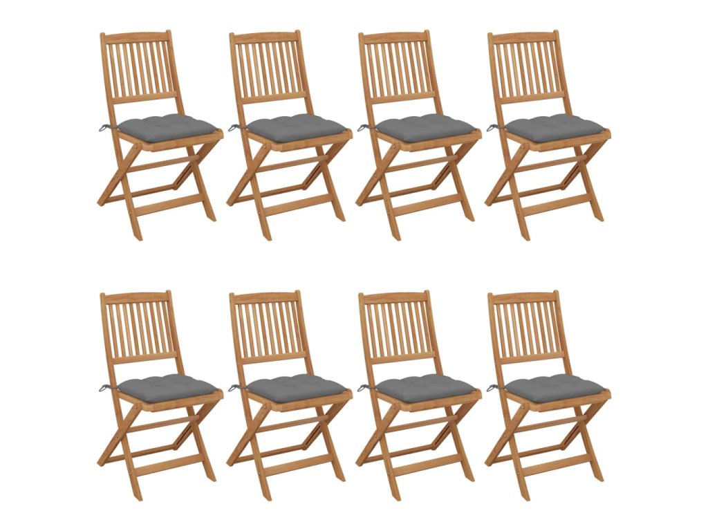 vidaXL Skladacie záhradné stoličky 8 ks so sedákmi akáciový masív