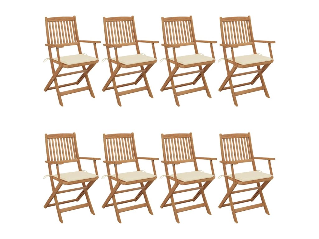 vidaXL Skladacie záhradné stoličky 8 ks so sedákmi akáciový masív