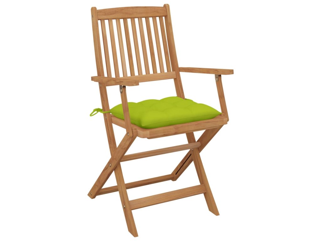Tieto skladacie stoličky z masívneho akáciového dreva s podložkami poskytujú ideálne miesto na odpočinok a užívanie si slnečných lúčov na záhrade alebo terase.