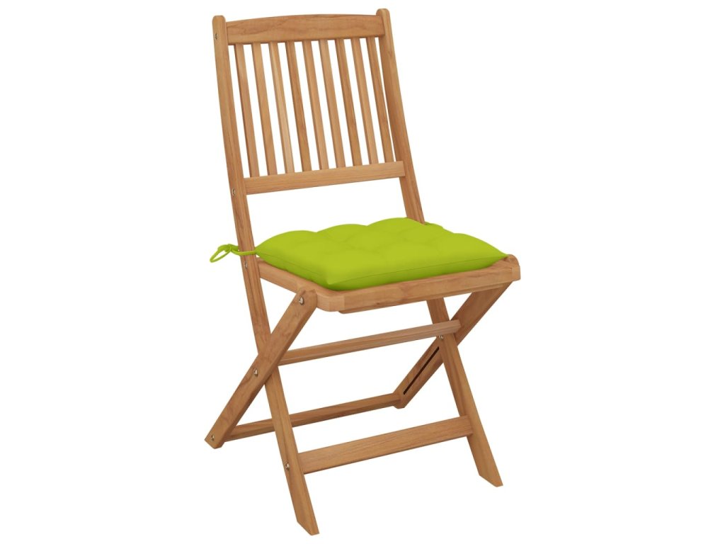 Tieto skladacie stoličky z masívneho akáciového dreva s podložkami poskytujú ideálne miesto na odpočinok a užívanie si slnečných lúčov na záhrade alebo terase.