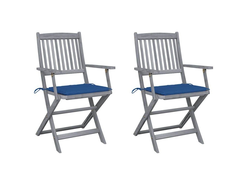 vidaXL Skladacie záhradné stoličky s podložkami 2 ks akáciový masív