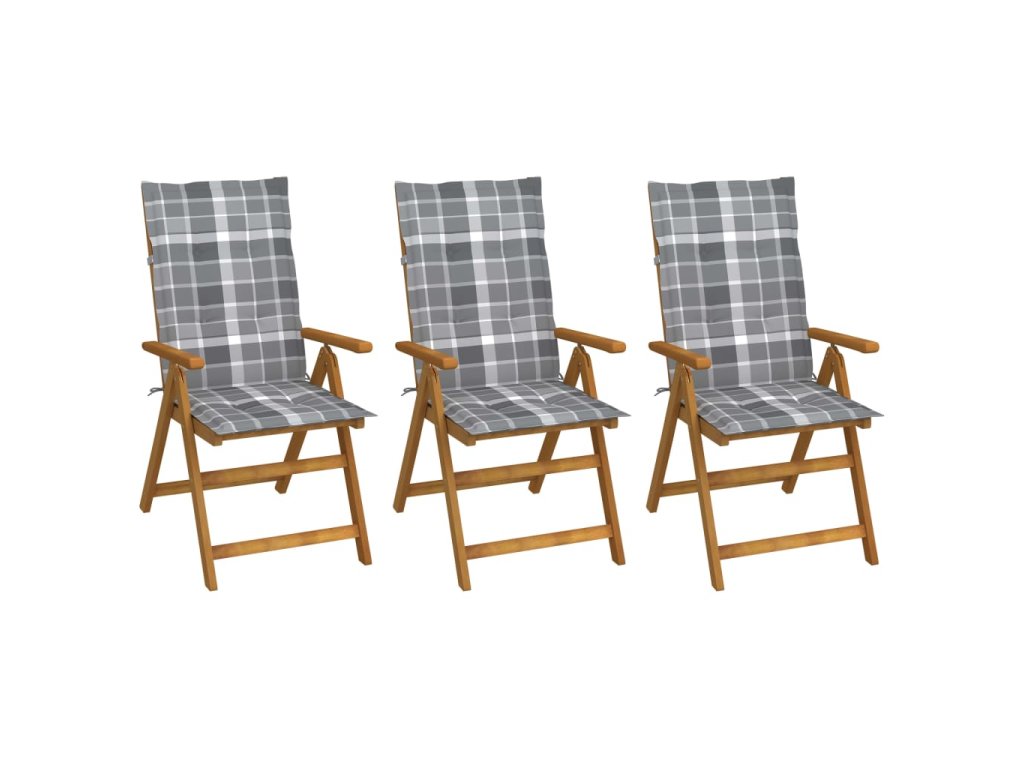 vidaXL Skladacie záhradné stoličky s podložkami 3 ks akáciový masív