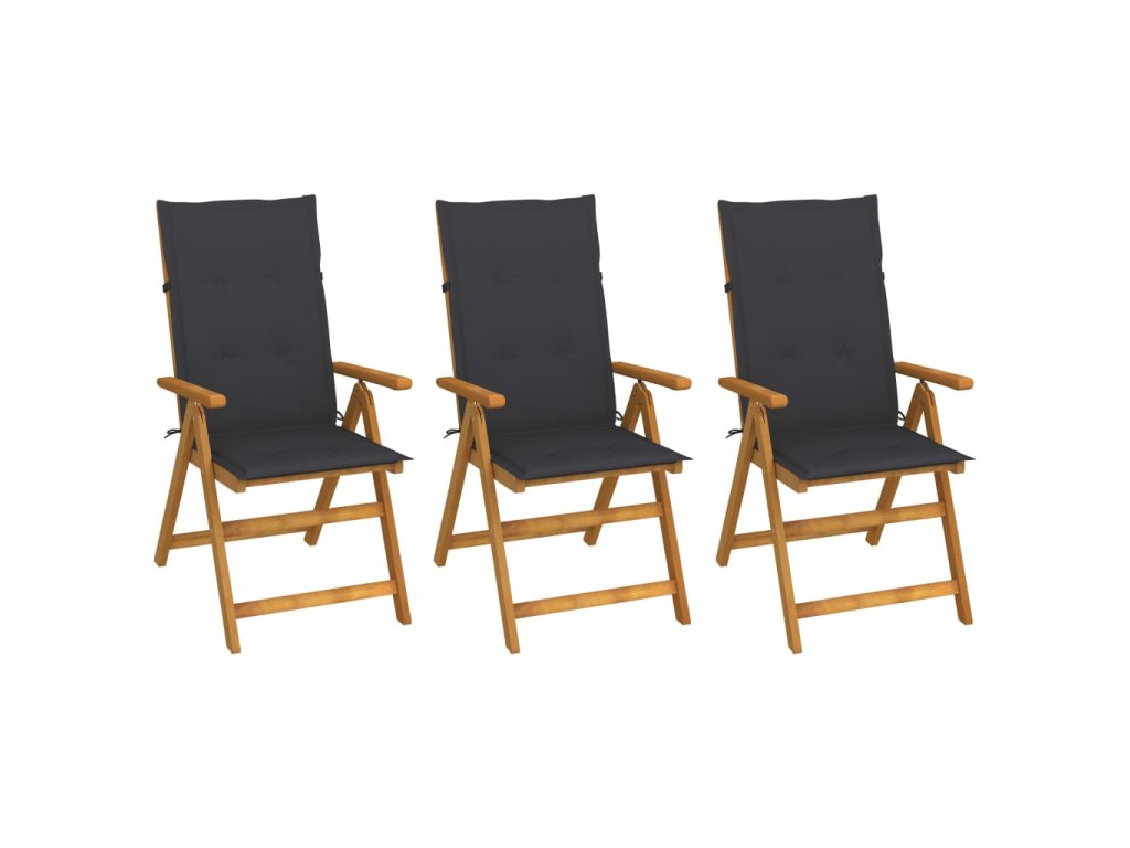 vidaXL Skladacie záhradné stoličky s podložkami 3 ks akáciový masív