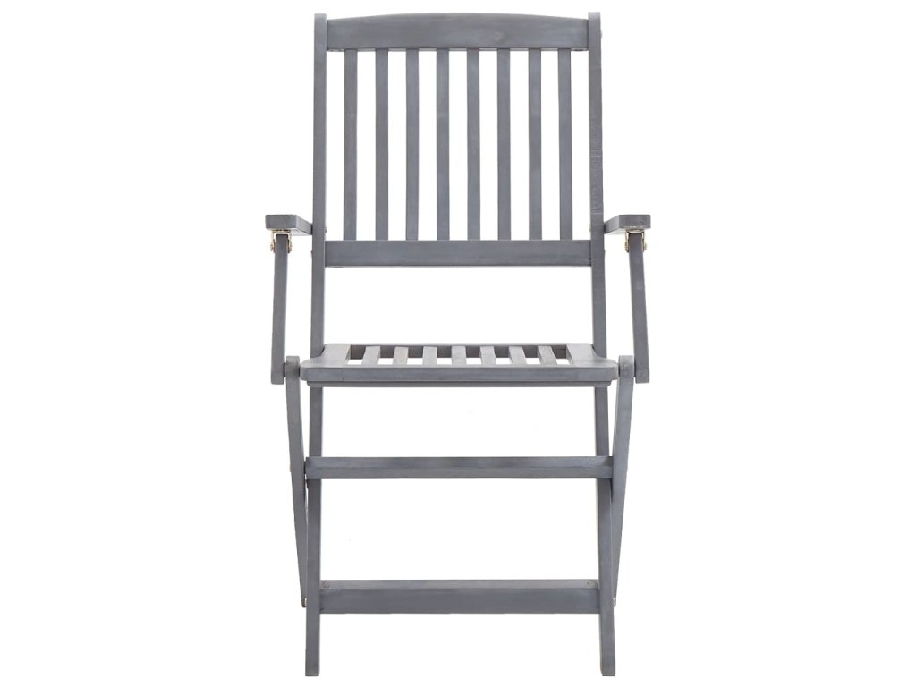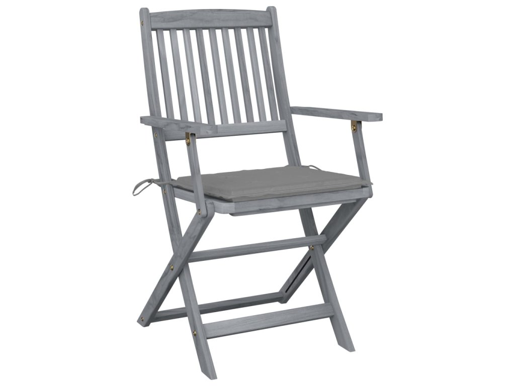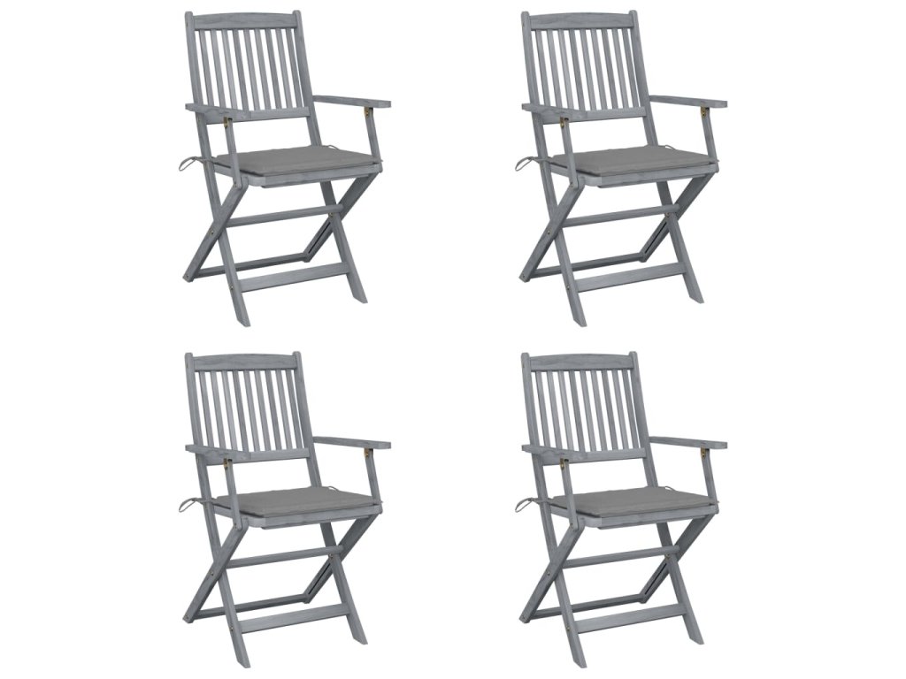 Tieto jedálenské stoličky sú vyrobené z masívneho akáciového dreva, tropického tvrdého dreva, ktoré je odolné voči poveternostným vplyvom a trvácne pre dlhé roky používania. Akáciový masív má dostatočnú silu, aby uniesol zaťaženie, ale odolá aj dlhodobému používaniu. Sivý premývaný povrch sa ľahko čistí vlhkou handričkou. Keď sa stoličky nepoužívajú, dajú sa sklopiť, aby sa ušetrilo miesto. Pribalený vankúš poskytuje vysoké pohodlie pri oddychu alebo stolovaní. Každý vankúš má dve sady šnúrok, pomocou ktorých ho pevne pripevníte k stoličke.