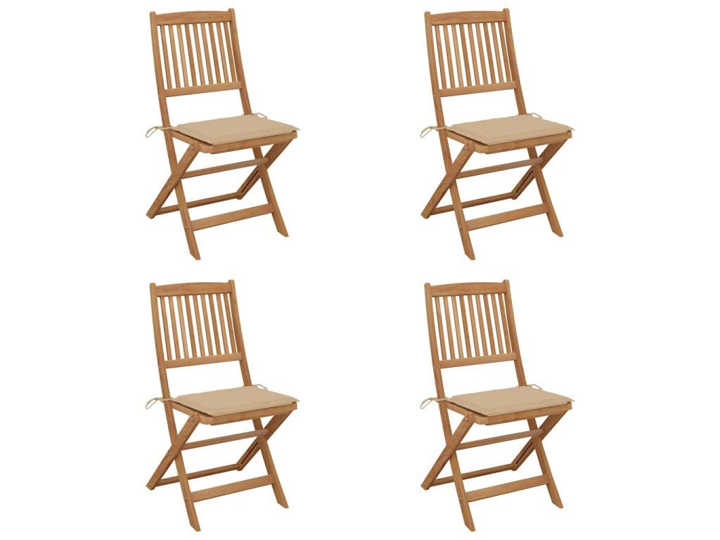 vidaXL Skladacie záhradné stoličky s podložkami 4 ks akáciový masív