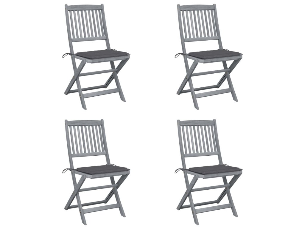 vidaXL Skladacie záhradné stoličky s podložkami 4 ks akáciový masív