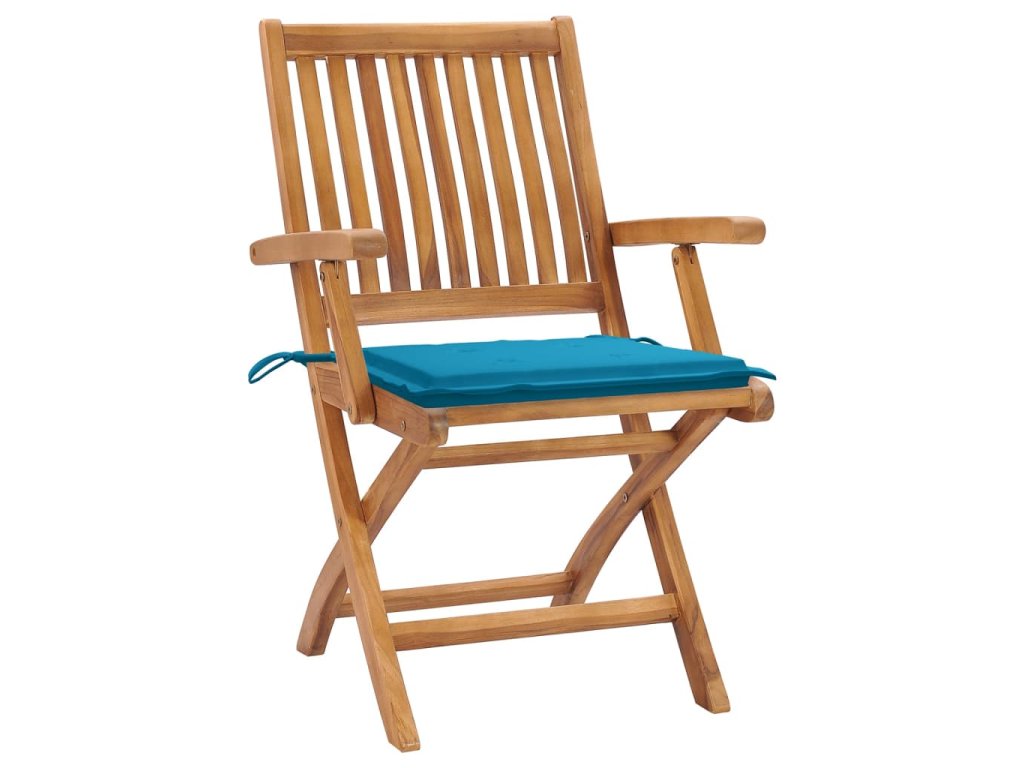 Táto sada tíkového nábytku je vyhotovená z mimoriadne trvácneho tvrdého tíkového dreva, ktoré bolo umelo vysušené v sušiarni a jeho povrch bol následne jemne obrúsený, aby získal hladký vzhľad. Tíkové drevo sa vyznačuje výnimočnou pevnosťou a odolnosťou voči poveternostným vplyvom, a tak predstavuje jeden z najvhodnejších materiálov na výrobu záhradného nábytku spomedzi všetkých ostatných druhov dreva. Ak si chcete zaobstarať záhradný nábytok, ktorý vám bude slúžiť dlhé roky, tíkové drevo je pre vás ako stvorené. Vďaka brúsenému povrchu sú jedálenské stoličky odolné voči poveternostným vplyvom a ľahko sa čistia. Môžu sa tiež zložiť a ušetriť tak úložný priestor, keď sa nepoužívajú. Navyše, pribalené vankúše poskytujú ďalšie pohodlie. Každý vankúš má 2 sady šnúrok, ktoré ho pevne prichytia k stoličke.
