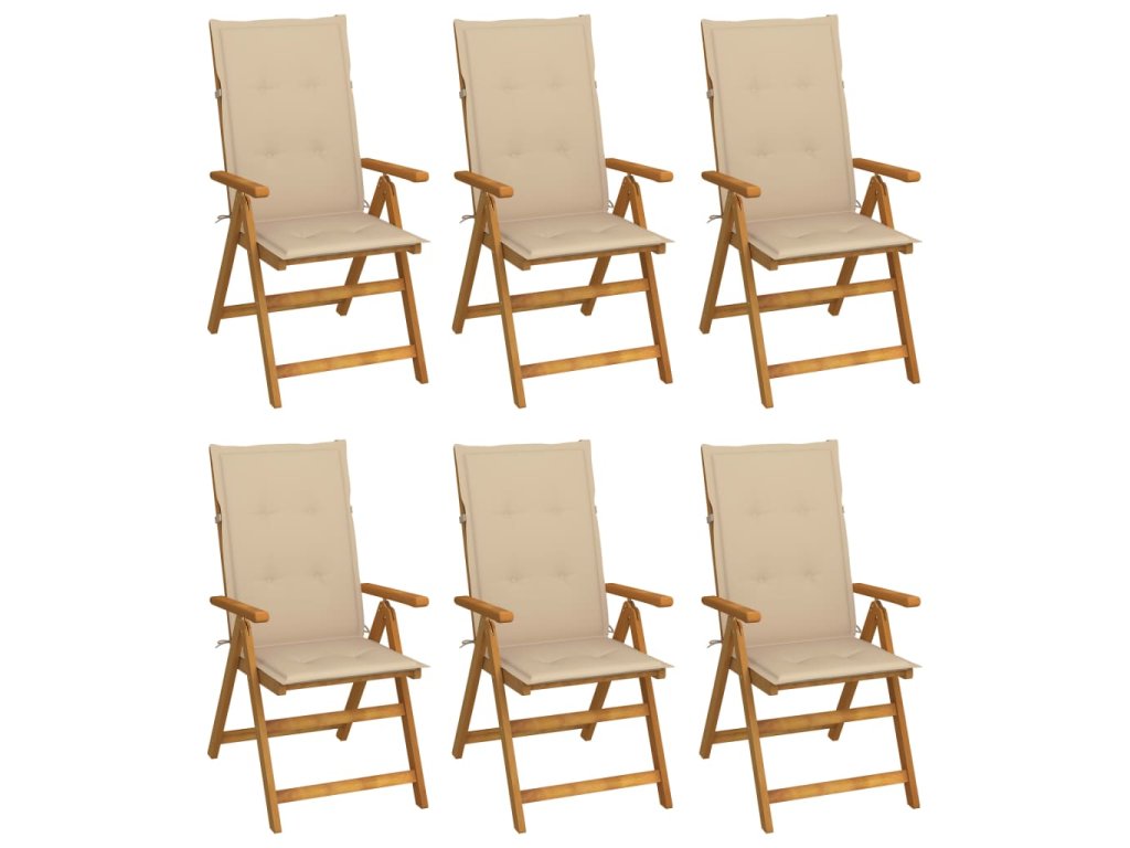 vidaXL Skladacie záhradné stoličky s podložkami 6 ks akáciový masív