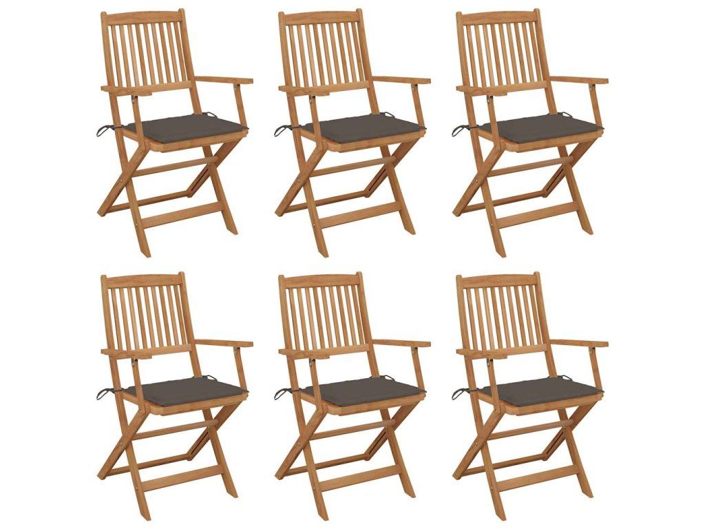 vidaXL Skladacie záhradné stoličky s podložkami 6 ks akáciový masív