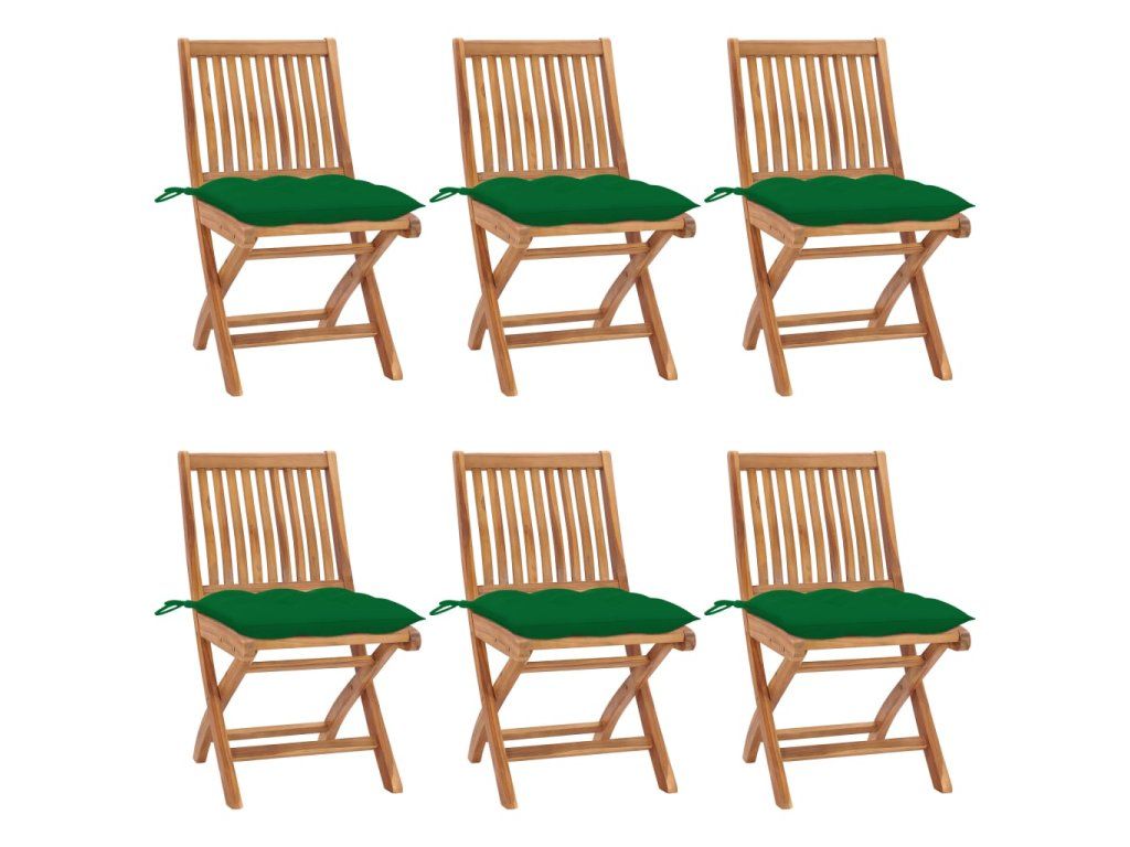 vidaXL Skladacie záhradné stoličky s podložkami 6 ks tíkový masív