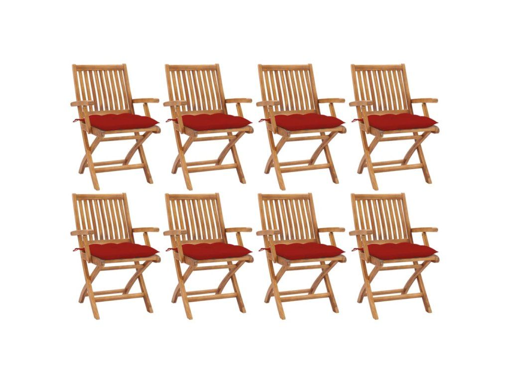 vidaXL Skladacie záhradné stoličky s podložkami 8 ks tíkový masív