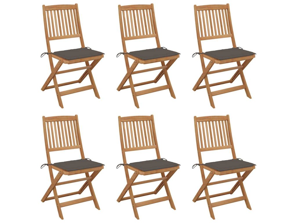 vidaXL Skladacie záhradné stoličky so sedákmi 6 ks akáciový masív