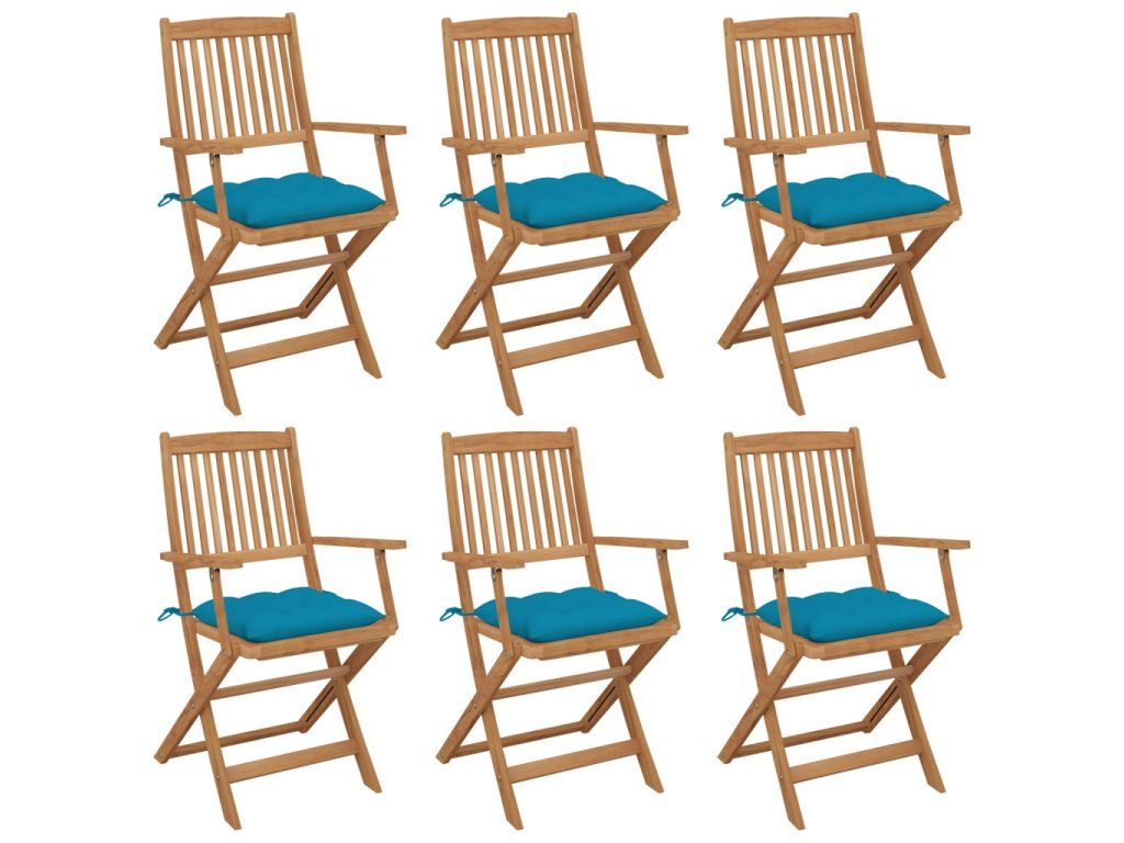 vidaXL Skladacie záhradné stoličky so sedákmi 6 ks akáciový masív