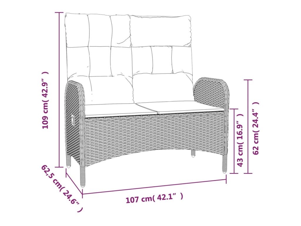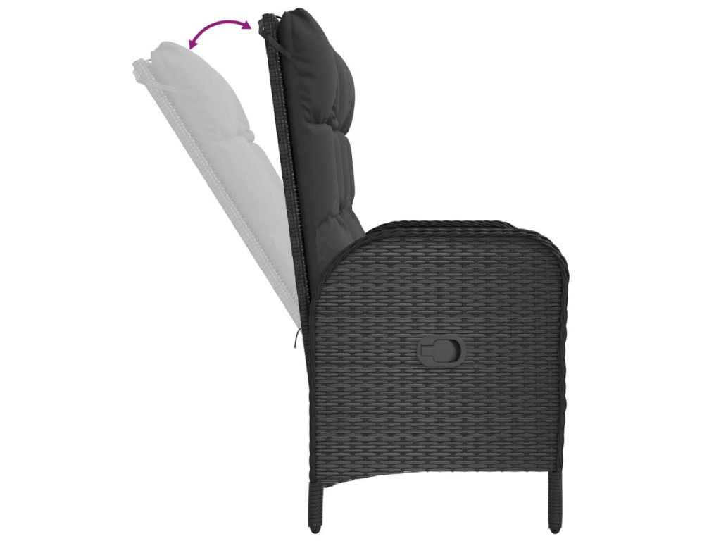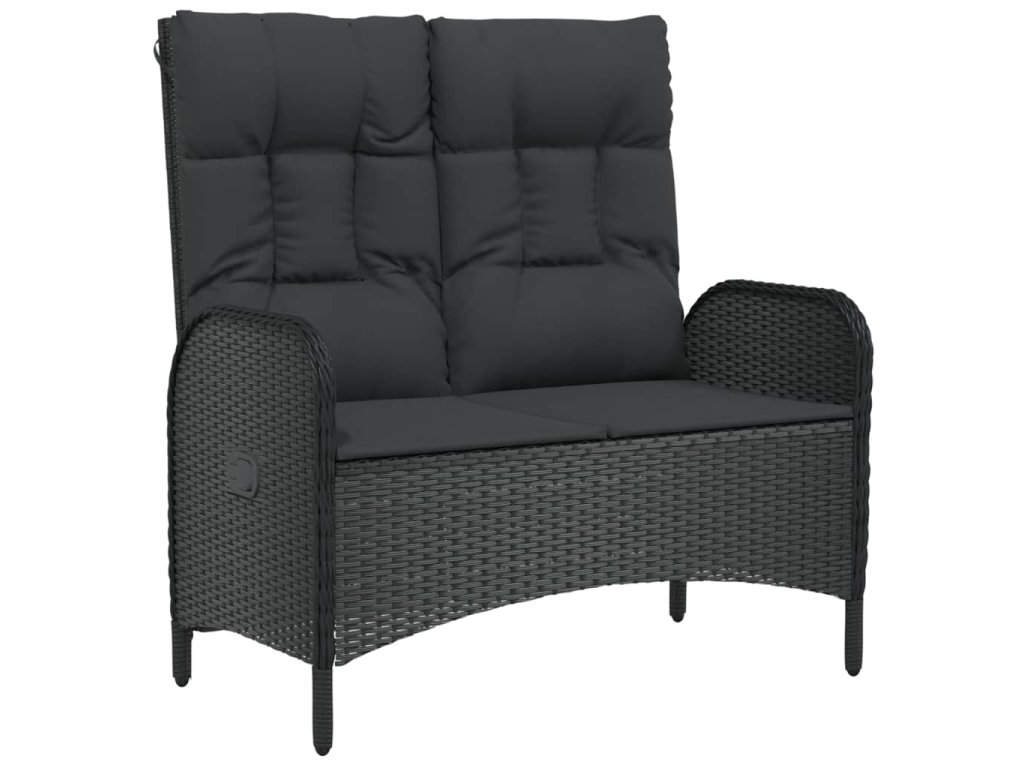 vidaXL Sklápacia záhradná lavička s vankúšmi 107 cm polyratan čierna