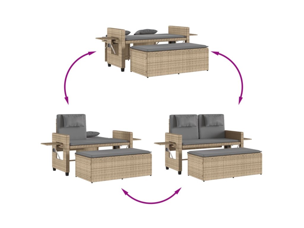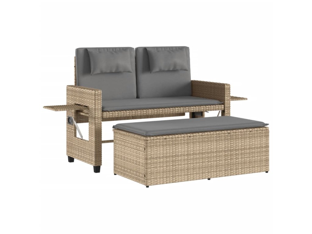 - Všestranná funkčnosť: Tento vonkajší nábytok sa dá použiť ako dvojmiestna lavica alebo rozkladacia pohovka. Jednoducho ju môžete zmeniť na posteľ sklopením operadla a vytiahnutím taburetky spod lavice. Podporné panely za operadlami zvyšujú stabilitu postele.