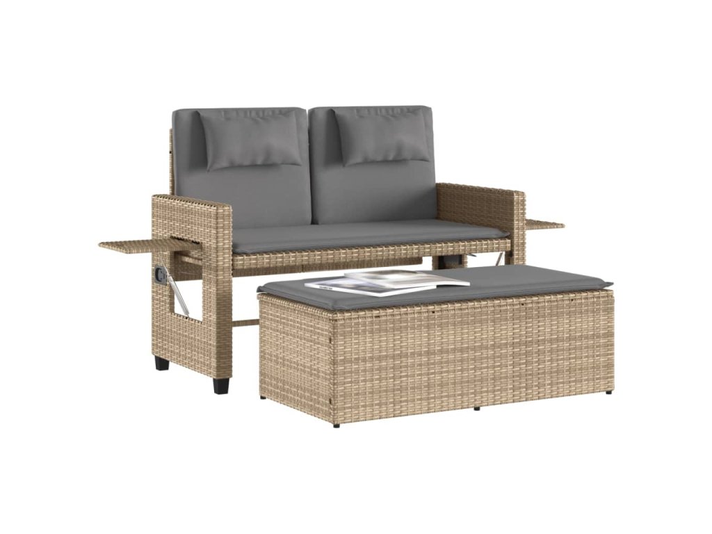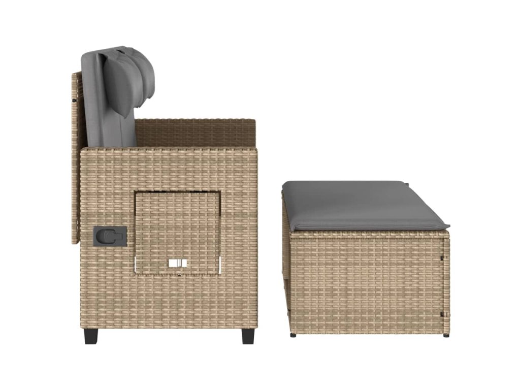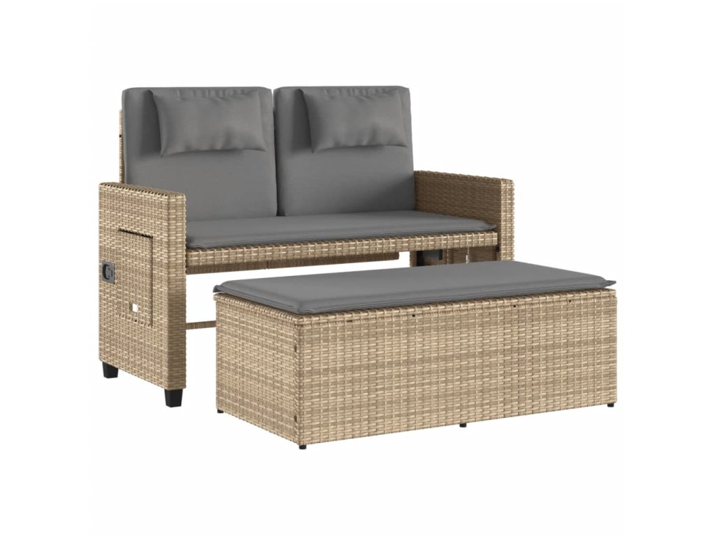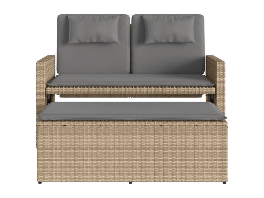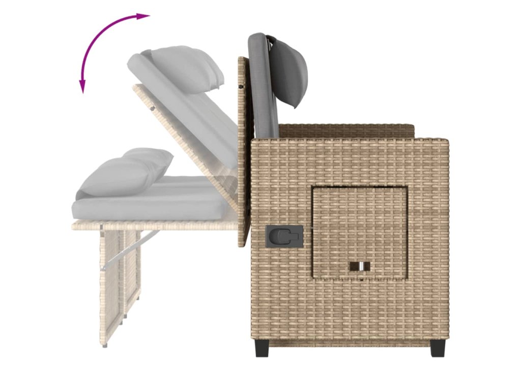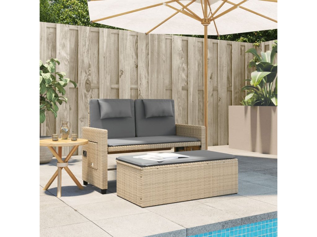 vidaXL Sklápacia záhradná lavička s vankúšmi béžová polyratan