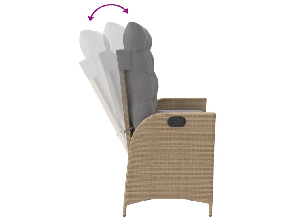 vidaXL Sklápacia záhradná lavička s vankúšmi béžová polyratan