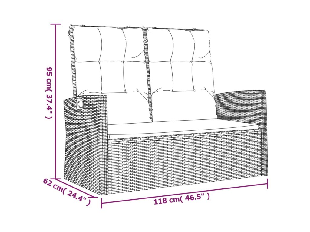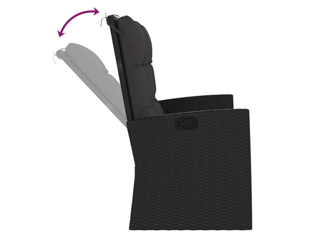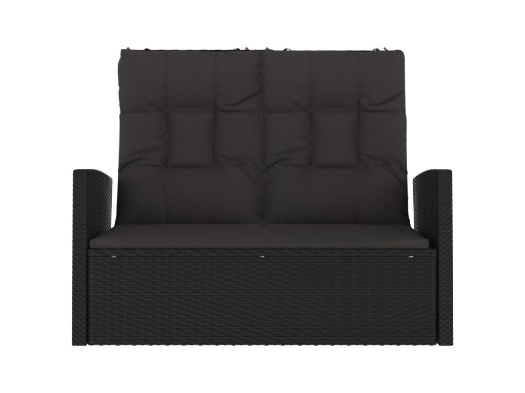 vidaXL Sklápacia záhradná lavička s vankúšmi čierna 118 cm polyratan