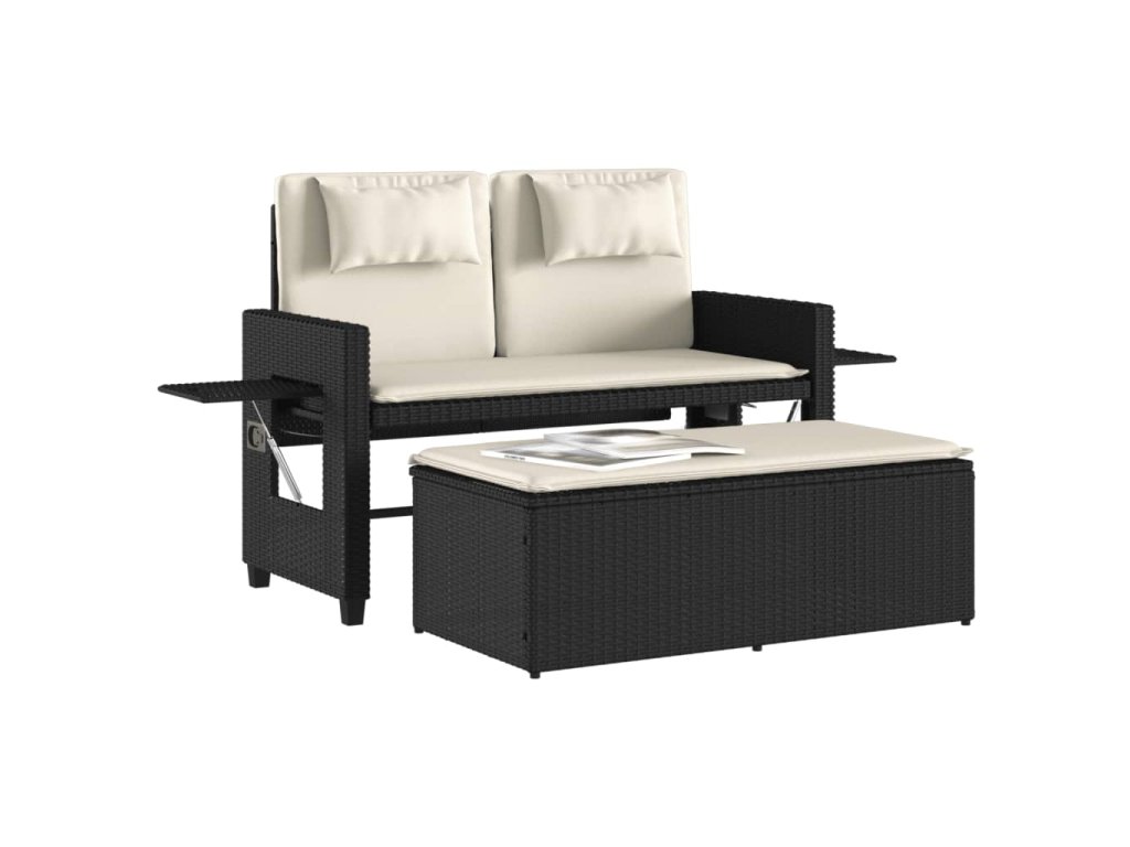 vidaXL Sklápacia záhradná lavička s vankúšmi čierna polyratan
