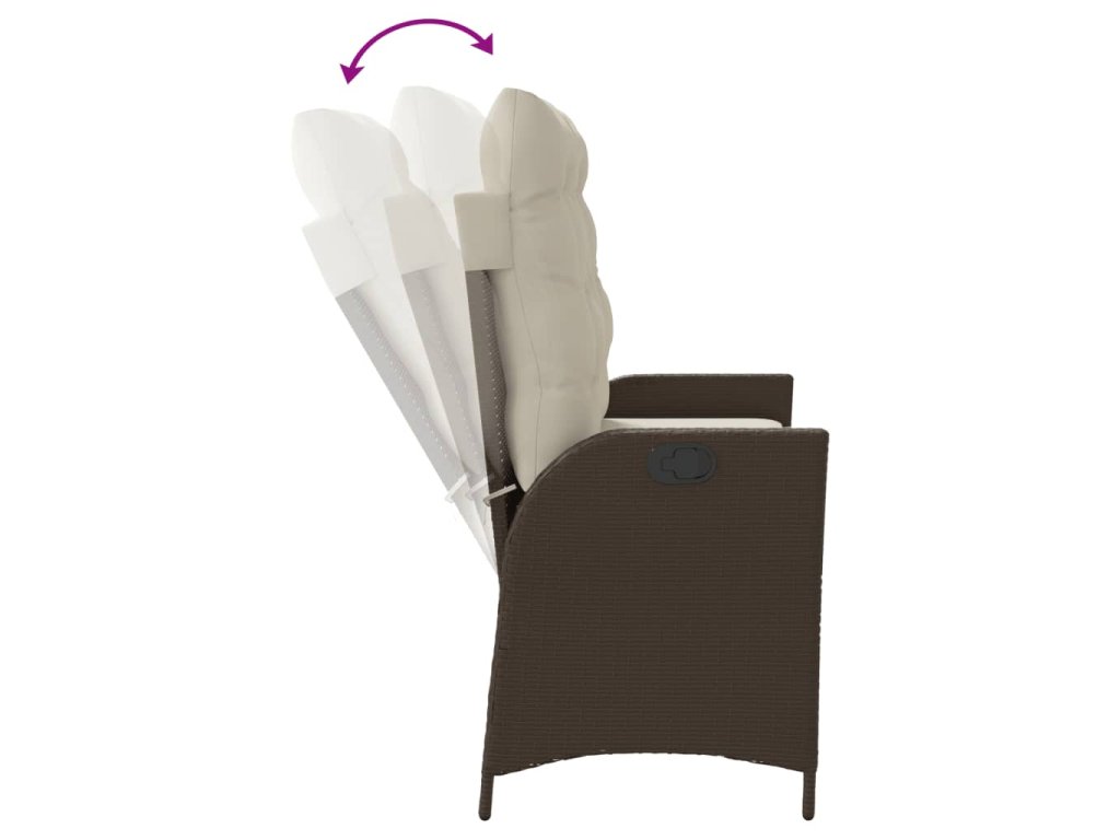 vidaXL Sklápacia záhradná lavička s vankúšmi hnedá polyratan