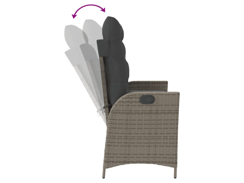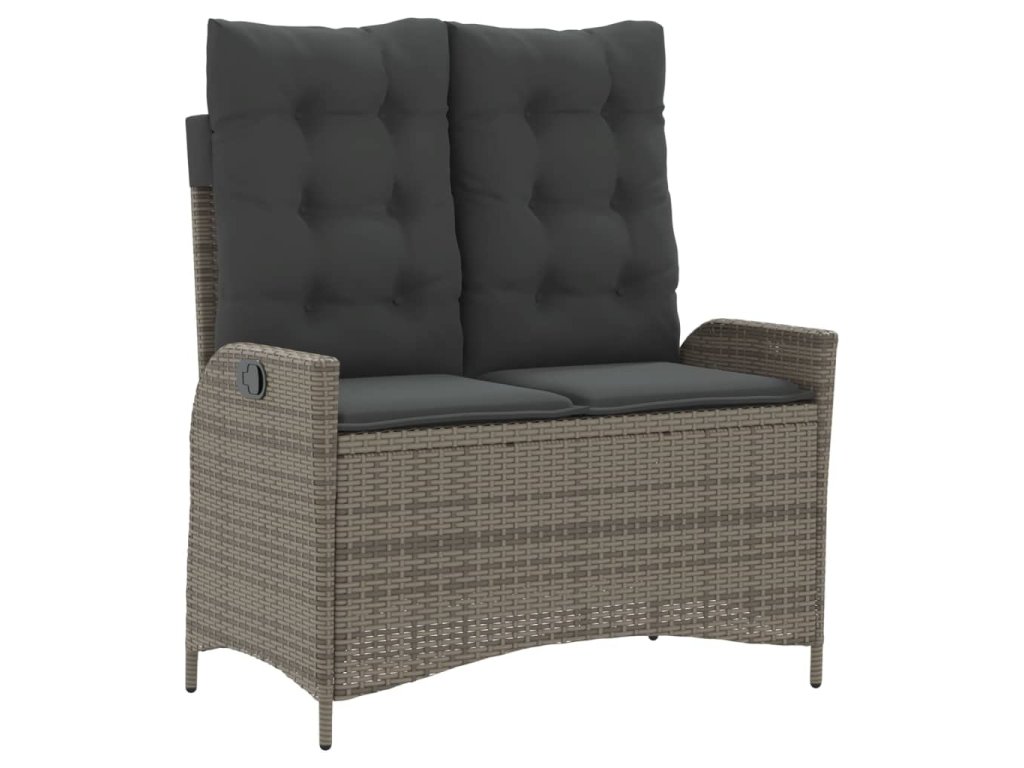 vidaXL Sklápacia záhradná lavička s vankúšmi sivá polyratan