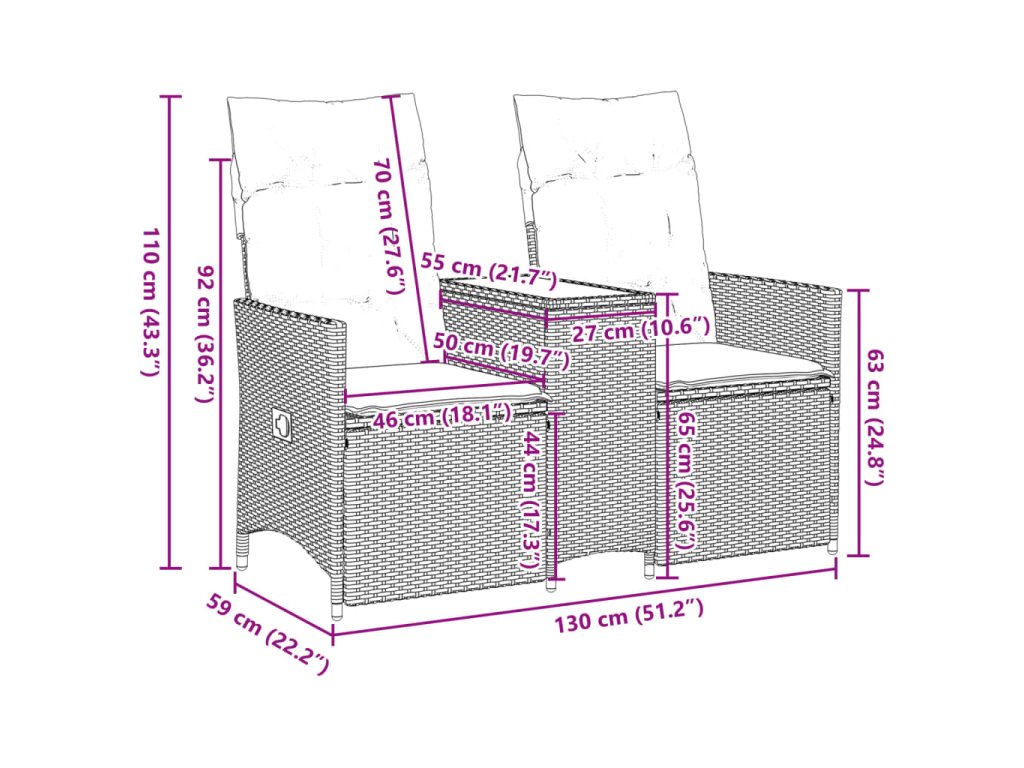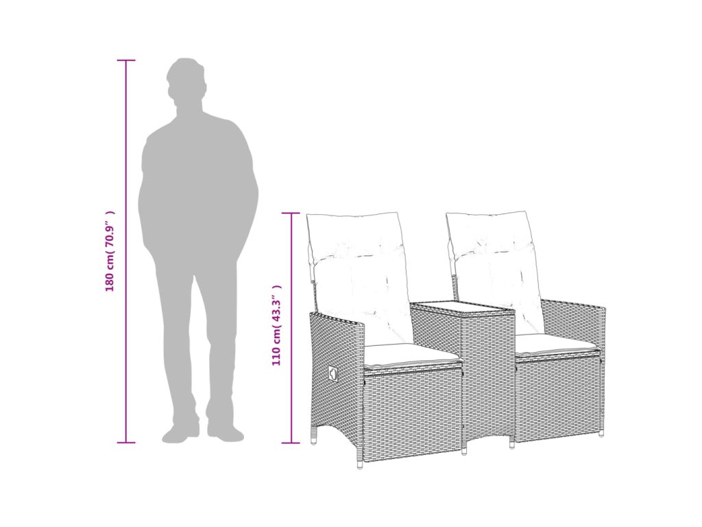 - Pohodlný centrálny stôl: Tento vonkajší nábytok je vybavený integrovaným centrálnym stolíkom, ktorý poskytuje praktické miesto na odkladanie vašich potrieb na dosah.