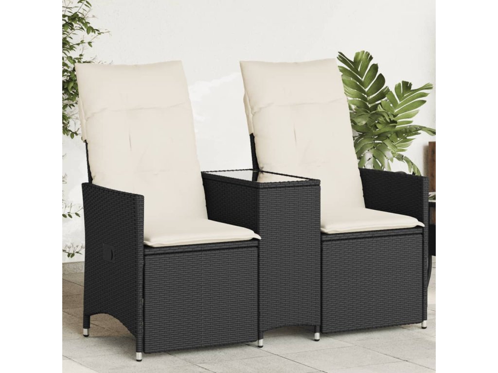 vidaXL Sklápacia záhradná pohovka 2-miestna so stolom čierna polyratan