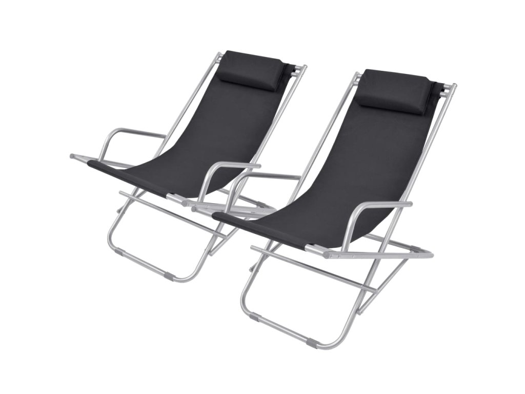 vidaXL Sklápacie kreslá na terasu 2 ks, oceľ, čierne