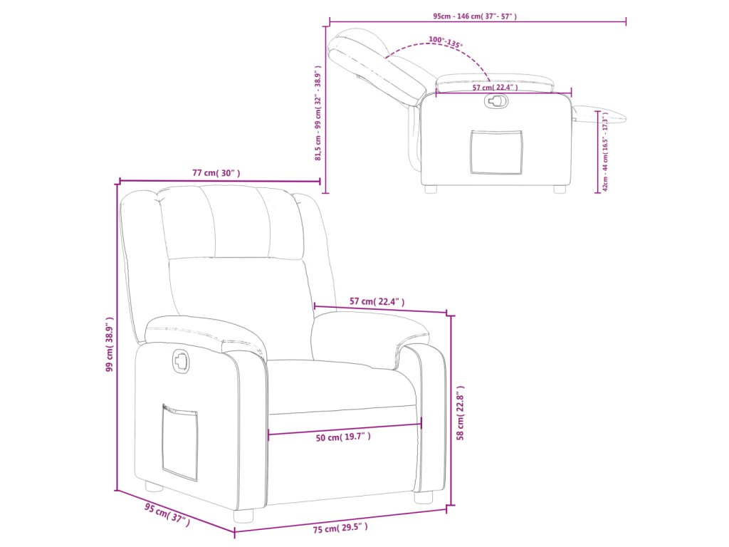 - Rozmery v polohe na ležanie: 77 x 146 x 81,5 cm (Š x H x V)