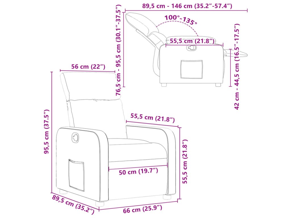 - Rozmery v polohe na sedenie: 66 x 89,5 x 95,5 cm (Š x H x V)