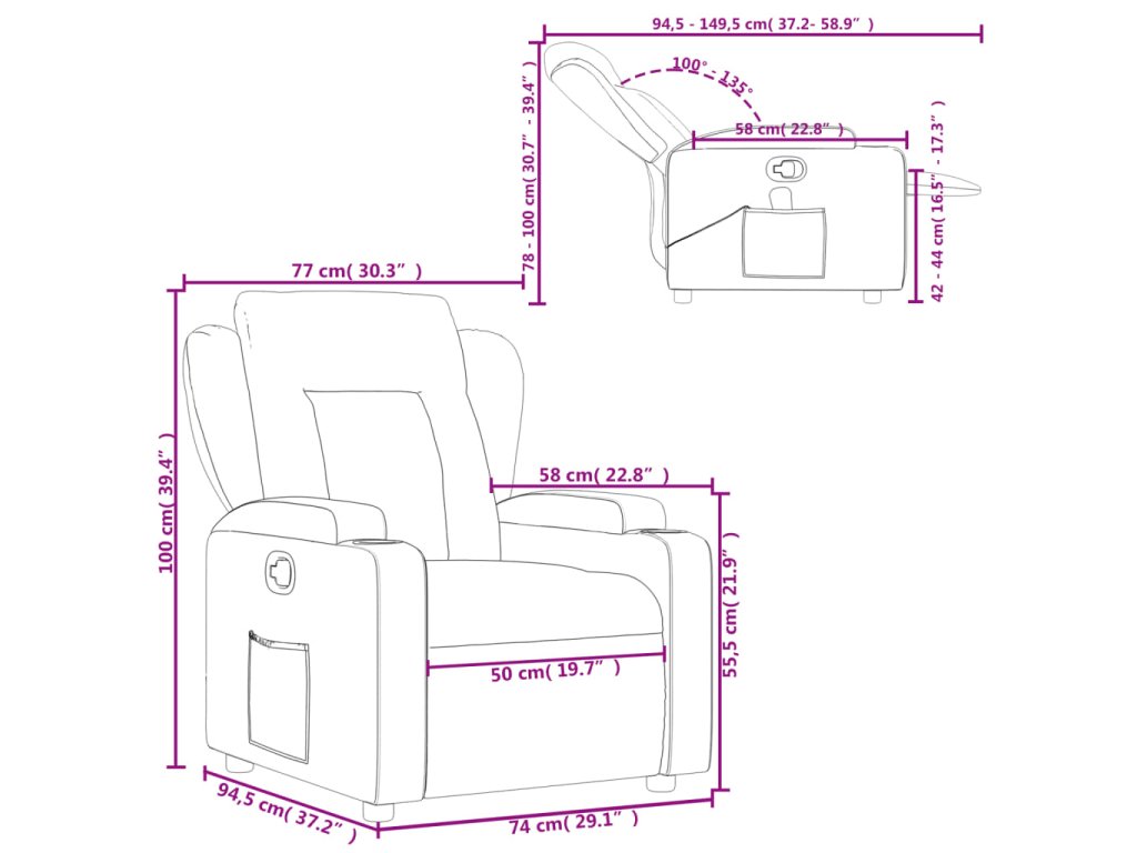 - Praktické držiaky na poháre a bočné vrecko: Toto kreslo má dva praktické držiaky na nápoje a bočné vrecko, vďaka ktorému budete mať svoje základné potreby na dosah.