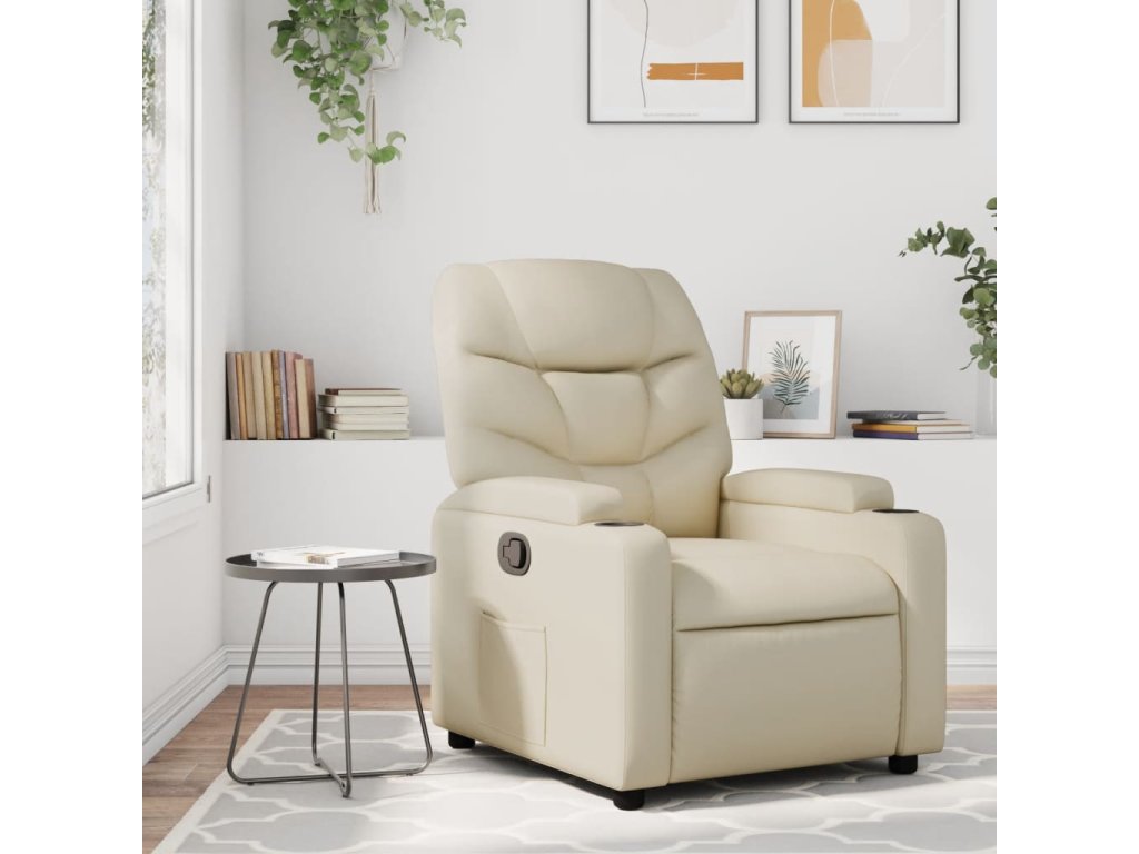 vidaXL Sklápacie kreslo, krémové, umelá koža