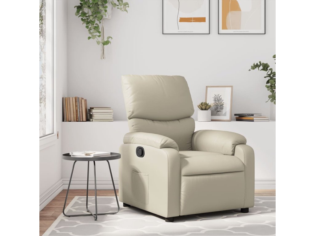 vidaXL Sklápacie kreslo, krémové, umelá koža