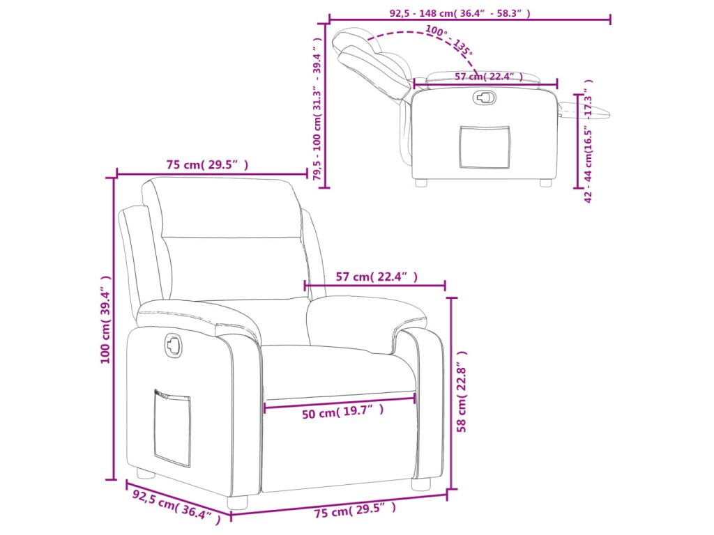 - Rozmery v polohe na ležanie: 75 x 148 x 79,5 cm (Š x H x V)