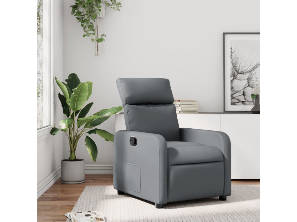 vidaXL Sklápacie kreslo, sivé, umelá koža