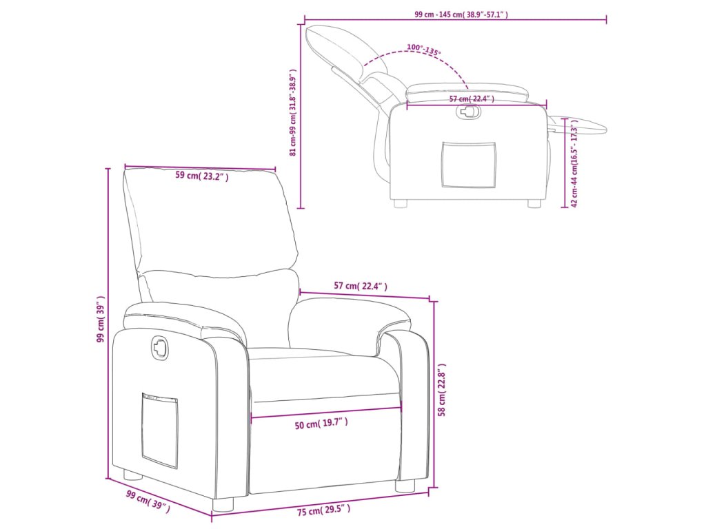 - Rozmery v polohe na ležanie: 75 x 145 x 81 cm (Š x H x V)
