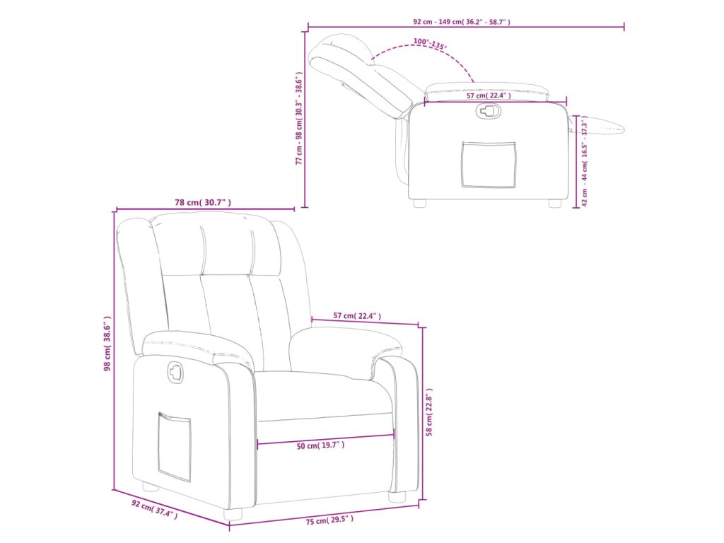 - Rozmery v polohe na ležanie: 78 x 149 x 77 cm (Š x H x V)